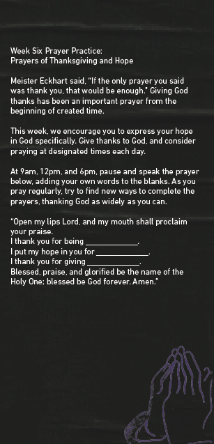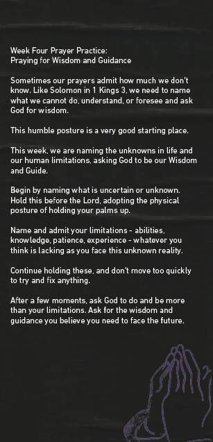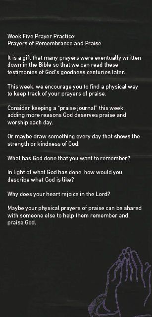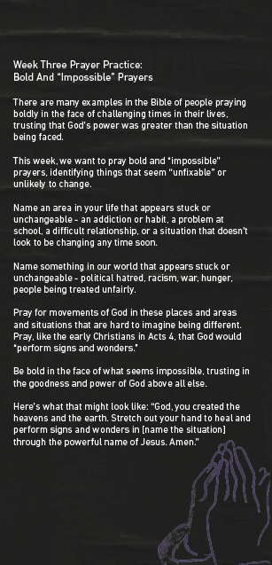Journey with us as we study a range of Biblical prayers and intentionally practice praying together.